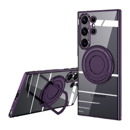 Magnetic Suction Bracket Electroplated Clear Protective Phone Case For Galaxy S24 S23 Ultra Plus
