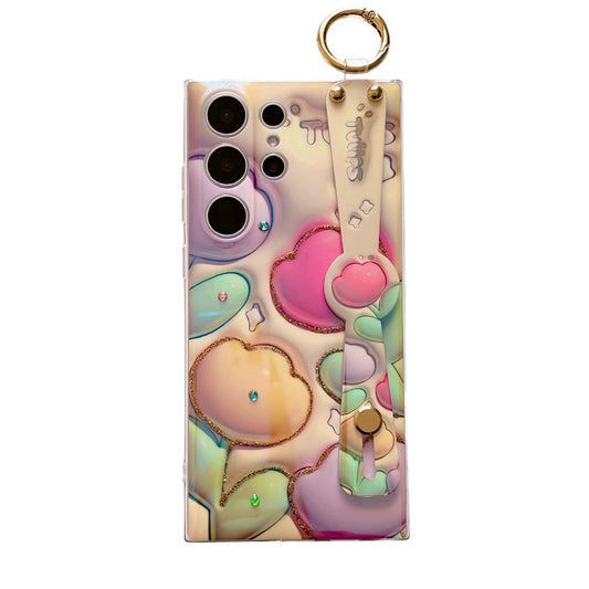 Purple Oil Painting Flower Wristband Holder With Lanyard Galaxy Phone Case