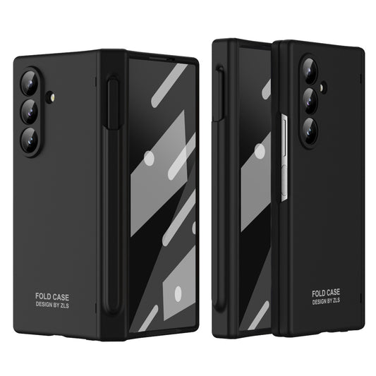 Frosted Silicone Hinge Protective Phone Case With Pen Slot & Stylus & Glass Film For Galaxy Z Fold Series