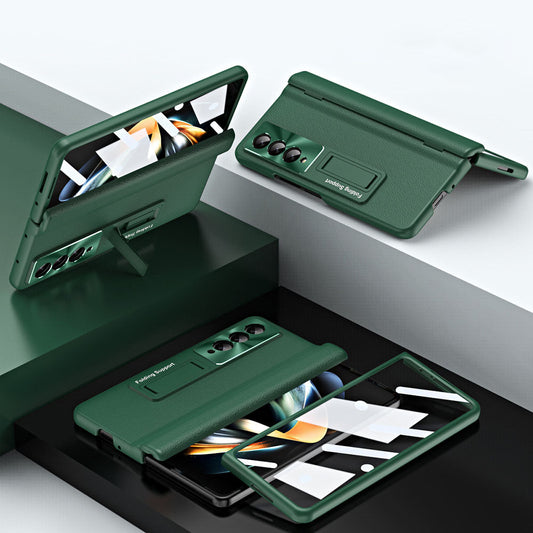 Central Axis With Pen Folding Anti-Fall Shell Film Integrated Leather Phone Case For Galaxy fold4 fold3 5G