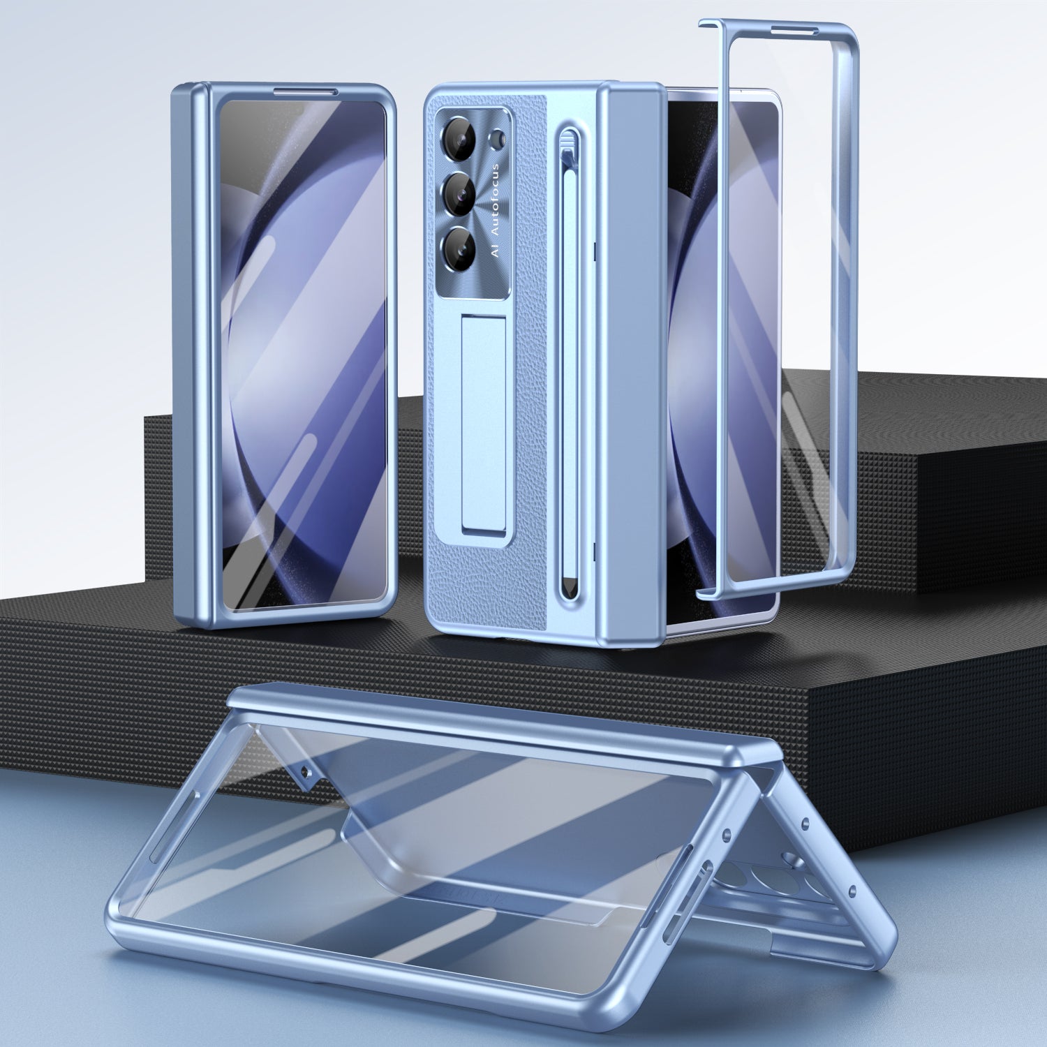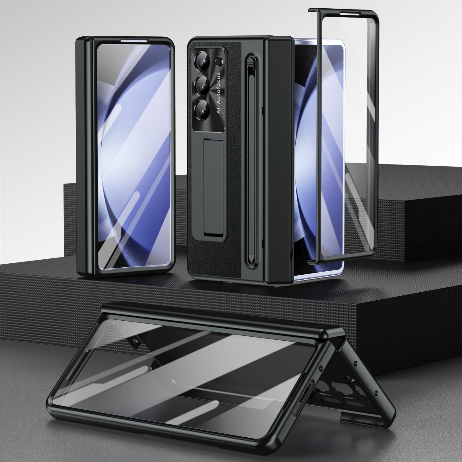 Leather Golden Electroplated Phone Case With Back Screen Glass and Stylus For Galaxy Z Fold 7/6/5/4
