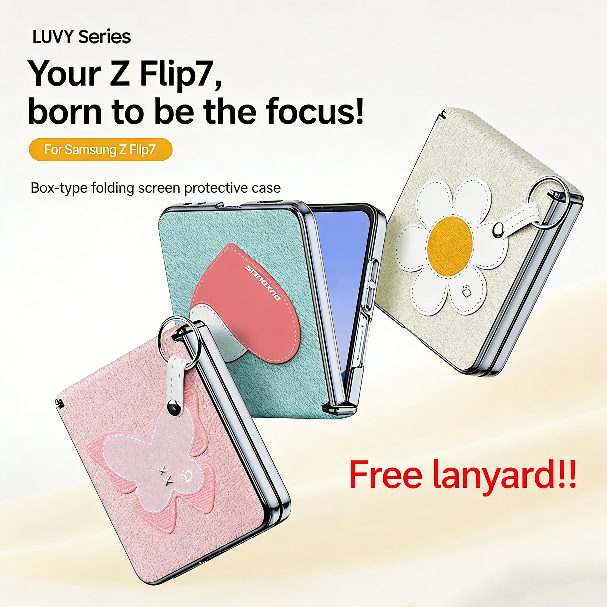 Leather Hinged Protective Phone Case With Lanyard For Galaxy Z Flip 7/6