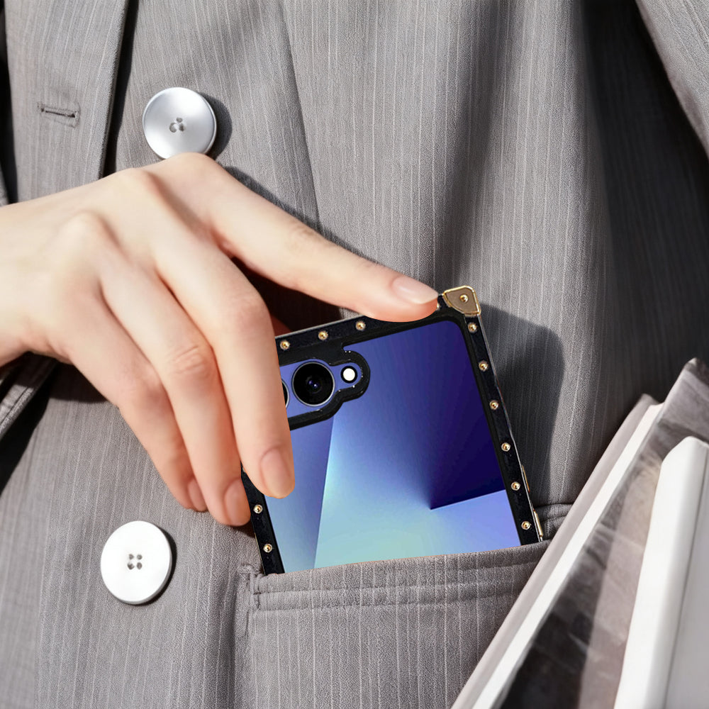 Rhinestone Trendy Phone Case With Magnetic Mirror Stand For Galaxy Z Flip 7/6/5/4